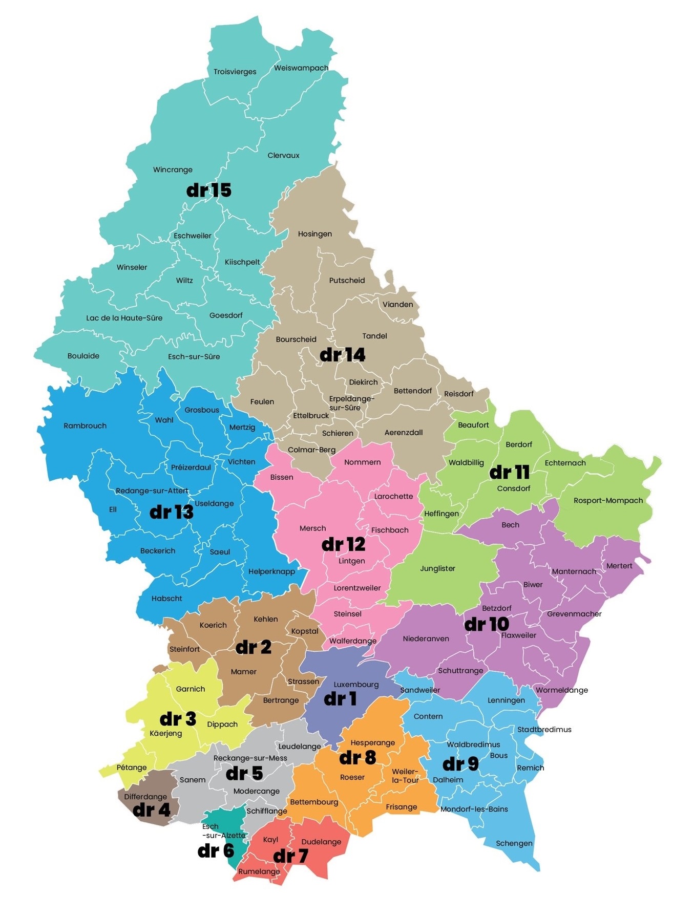 Les directions de l’enseignement fondamental sont réparties dans tout le pays selon un découpage qui prend en compte le nombre d’élèves, le nombre d’enseignants, d’écoles, de communes, les distances entre les écoles…